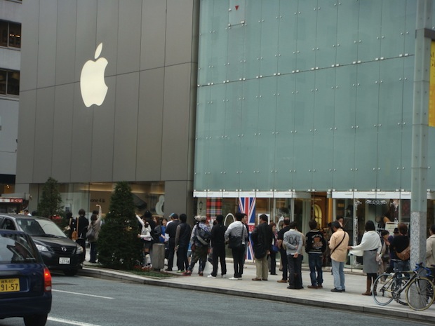 There were long queues braving the cold at the Ginza and Shibuya stores last year when Apple did the same thing.