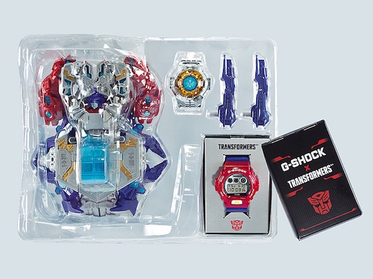 The G-Shock Transformers Optimus Prime Watch is a Japan-exclusive item that really is what its name suggests: a Casio G-shock watch in Transformers-themed colors, combined with a posable figurine of Optimus Prime himself.