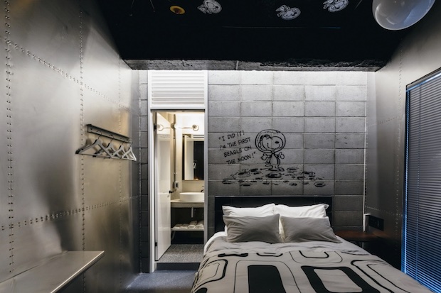 In addition to the 18 individually designed guest rooms across three floors (themed, respectively, “imagine,” “happy,” and “love”), there is also a Peanuts Cafe on the ground floor and Peanuts Diner on the third.