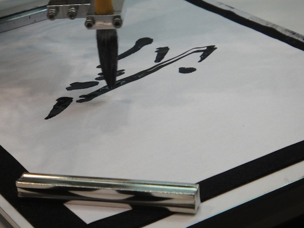 And, while it doesn’t look as visually impressive, it seems that at any rate these people actually got there first with their smaller calligraphy robot.